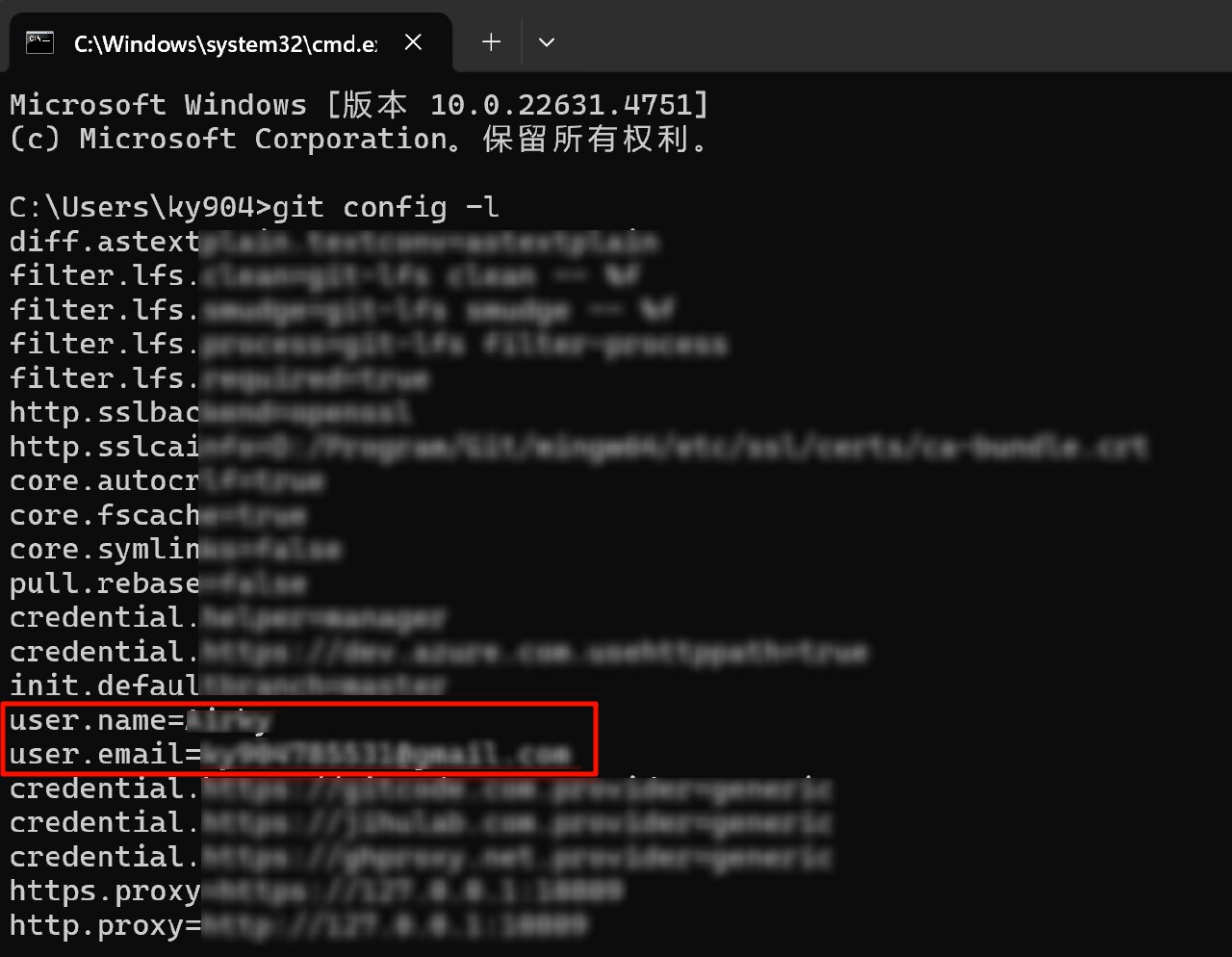 在CMD窗口输入以下命令,设置注册的github邮箱和用户名